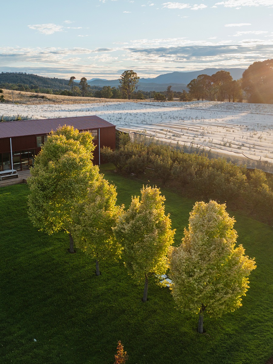 Enjoy our fully air-conditioned Cider House with stunning views over the Batlow orchards.